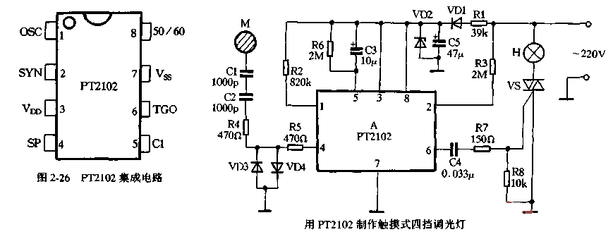 PT2102 dimming control ASIC