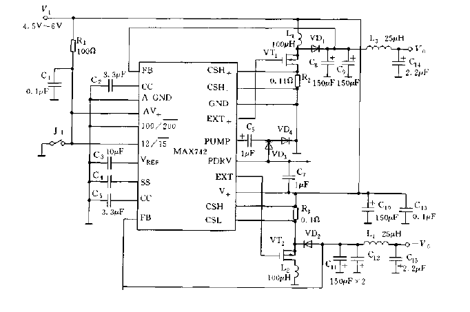Standard application circuit diagram of MAX742
