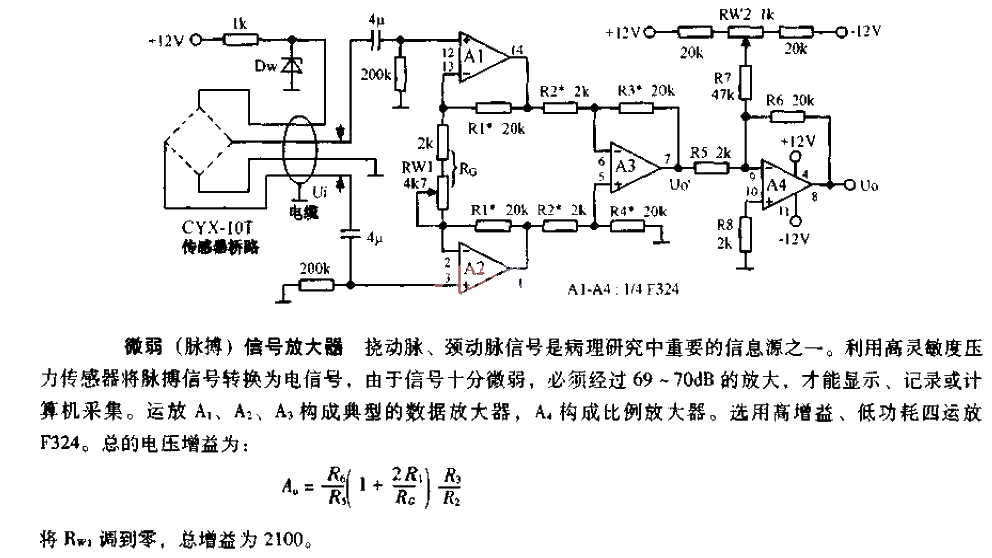 Weak pulse signal amplifier circuit