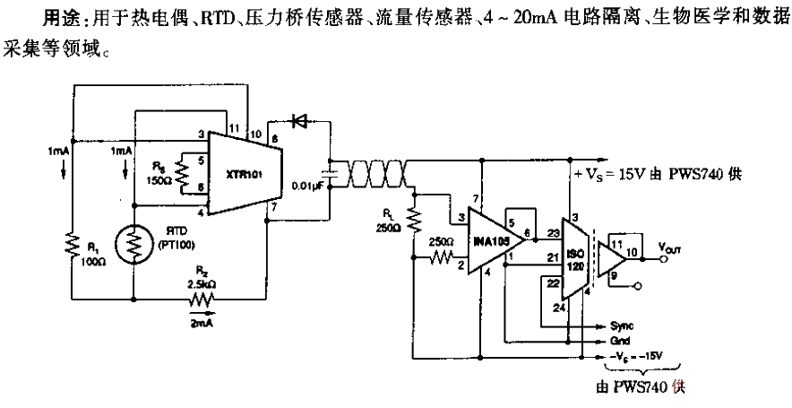 ISO120/ISO121 sensor transmitter circuit