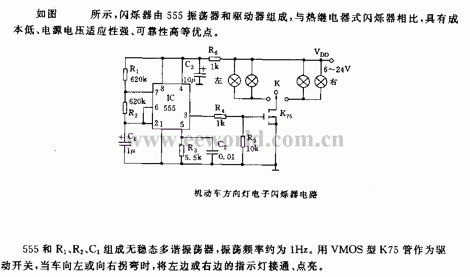 555 motor vehicle direction light electronic scintillator circuit
