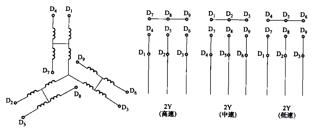 Three-speed motor stator winding 2Y-2Y-2Y connection method
