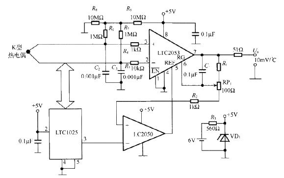 LTC2053 thermocouple amplification circuit diagram