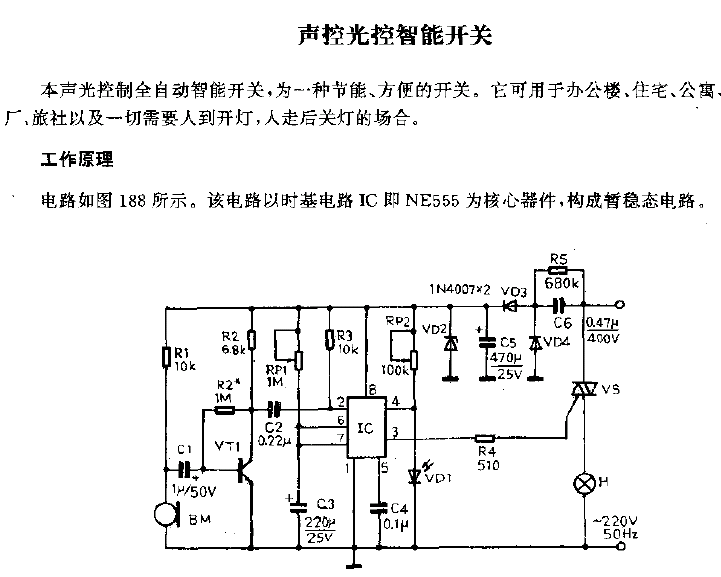 Sound-controlled and light-controlled intelligent switch circuit diagram